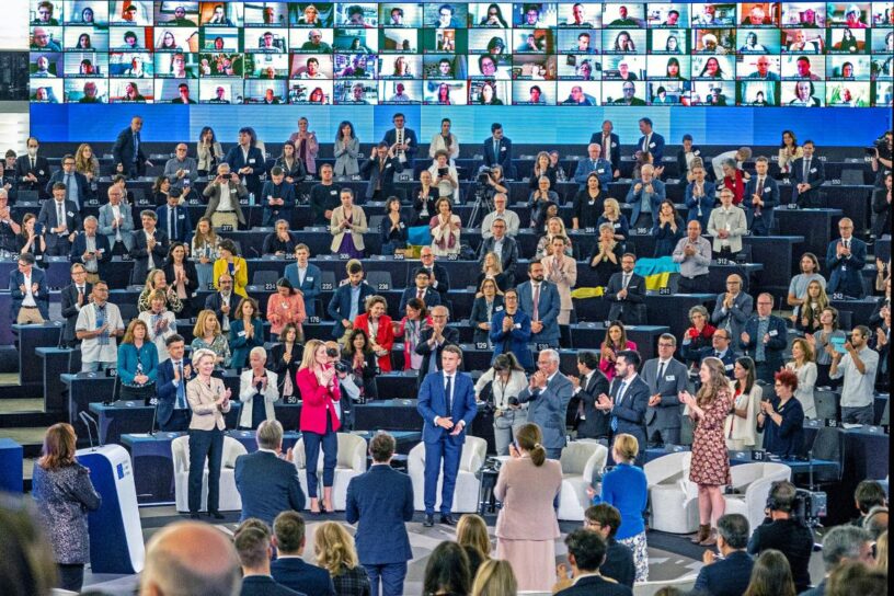 Speaking at the ceremony, Roberta Metsola, President of the European Parliament; Ursula von der Leyen, President of the European Commission; and French president Emmanuel Macron, representing the Council, acknowledged that some of the most ambitious proposals would require changes to the EU treaties.